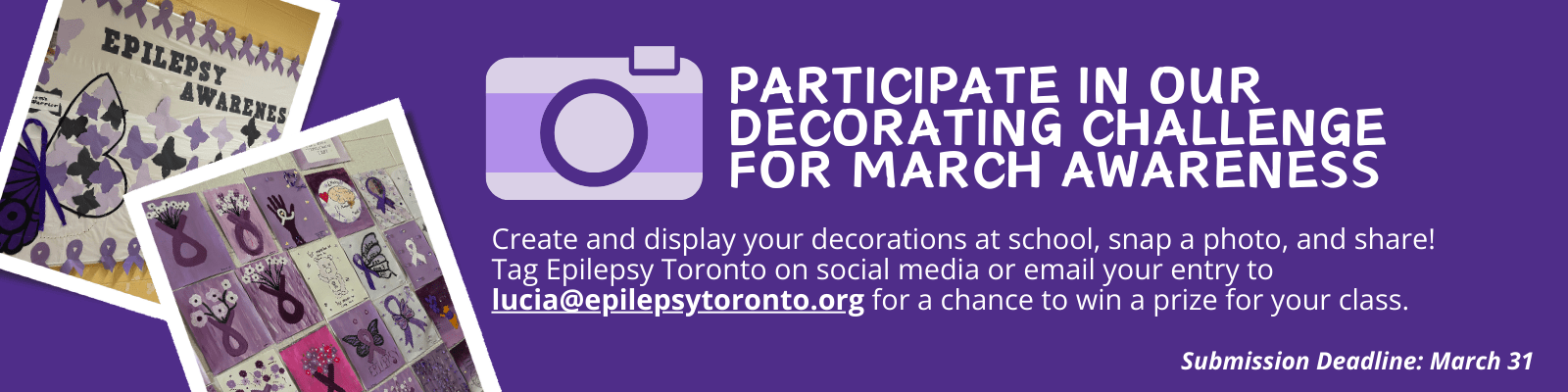 Epilepsy Toronto’s Children and Youth Services Department have developed a full lesson plan, including an educational video and learning activities, that your child can bring to their classroom for Purple Day on March 26th. All you have to do is contact your child’s educator and provide them with the digital resources.